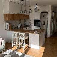 Mieszkanie usytuowane jest w inwestycji przy ul. Mała Góra w Krakowie, zielonej dzielnicy XII Bieżanów-Prokocim. Budynek mieszkalny oddalony jest od głównych, zakorkowanych arterii co zapewnia spokój, ciszę oraz lepszą jakość powietrza. Okolica charakteryzuje się obecnością licznych terenów zielonych co zachęca do codziennych spacerów, a z okien mieszkania zamiast balkonów blisko postawionego bloku widoczne są drzewa. Bezpieczne osiedle składa się z niskiej, 4 piętrowej zabudowy dzięki czemu mieszkańcy nie są przytłoczeni nadmiarem innych użytkowników.