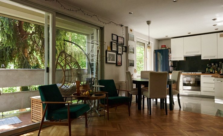 - jasny, duży 20m2 salon z wyjściem na loggię,